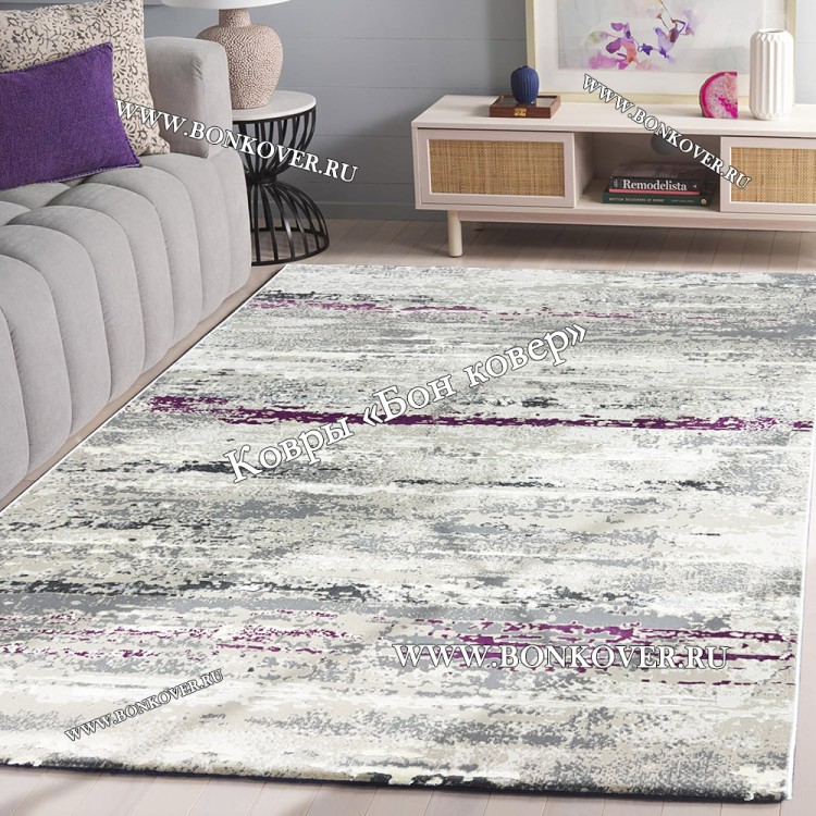 Изящный Абстрактный Турецкий Ковер Серый С Фиолетовым Арт 30039 наполняет интерьер комнаты теплом и уютом, гармонично сочетает в себе изящество и красоту. Он соткан из износостойких материалов, комфортный и долговечный.