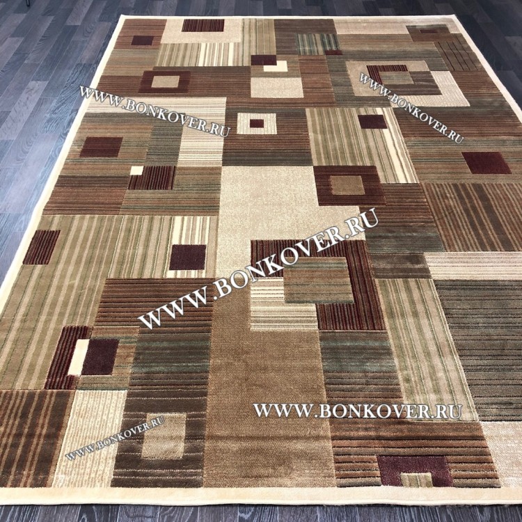 Красивый Бельгийский Ковер из Вискозы Геометрия Бежевый наполняет интерьер гостиной теплом и уютом, гармонично сочетает в себе изящество и красоту. Он выполнен из износостойких материалов, комфортный и долговечный.