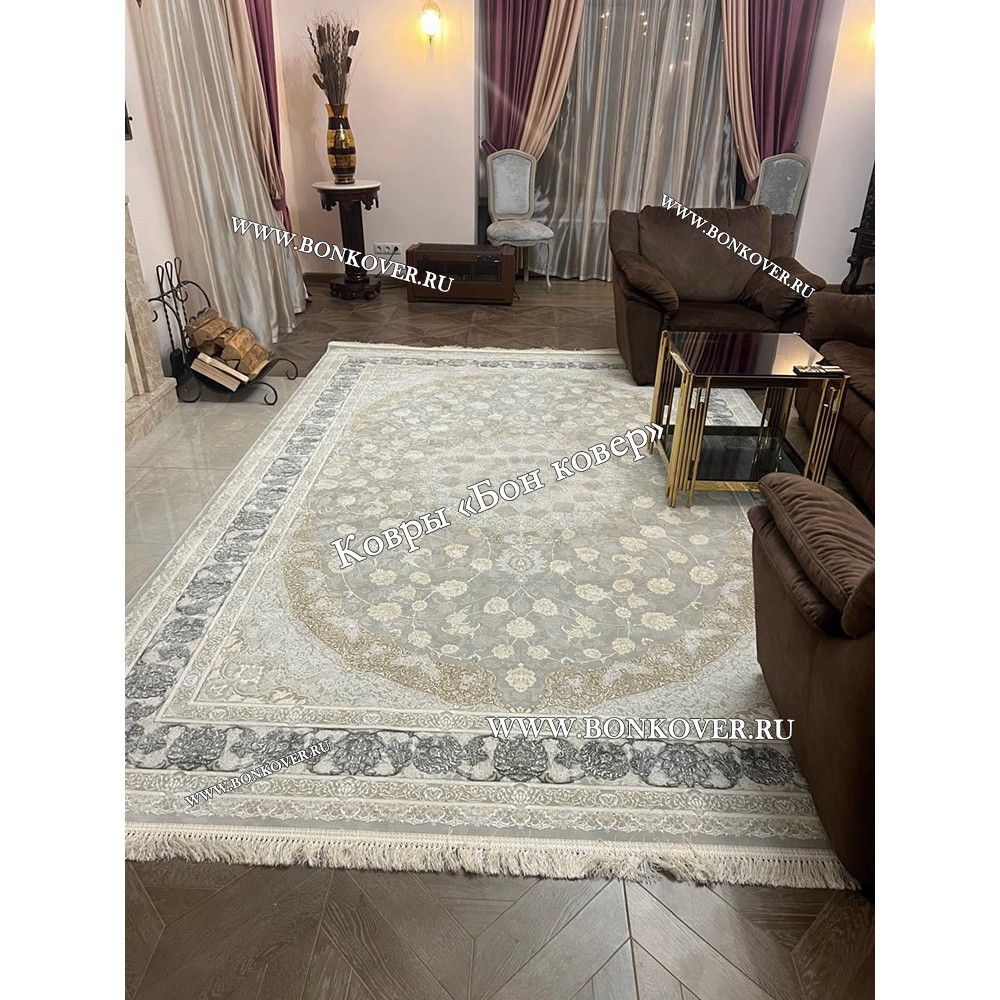 30.07.2024 Читать полный отзывНевероятной красоты ковер, действительно с белым оттенком, как будто седым налетом. Очень интересный замысловатый рисунок, просматриваются бежевые и серо-бежевые тона, просто украшение комнаты!) Огромное спасибо замечательной компании Бон Ковёр! Самая крутая компания☺️