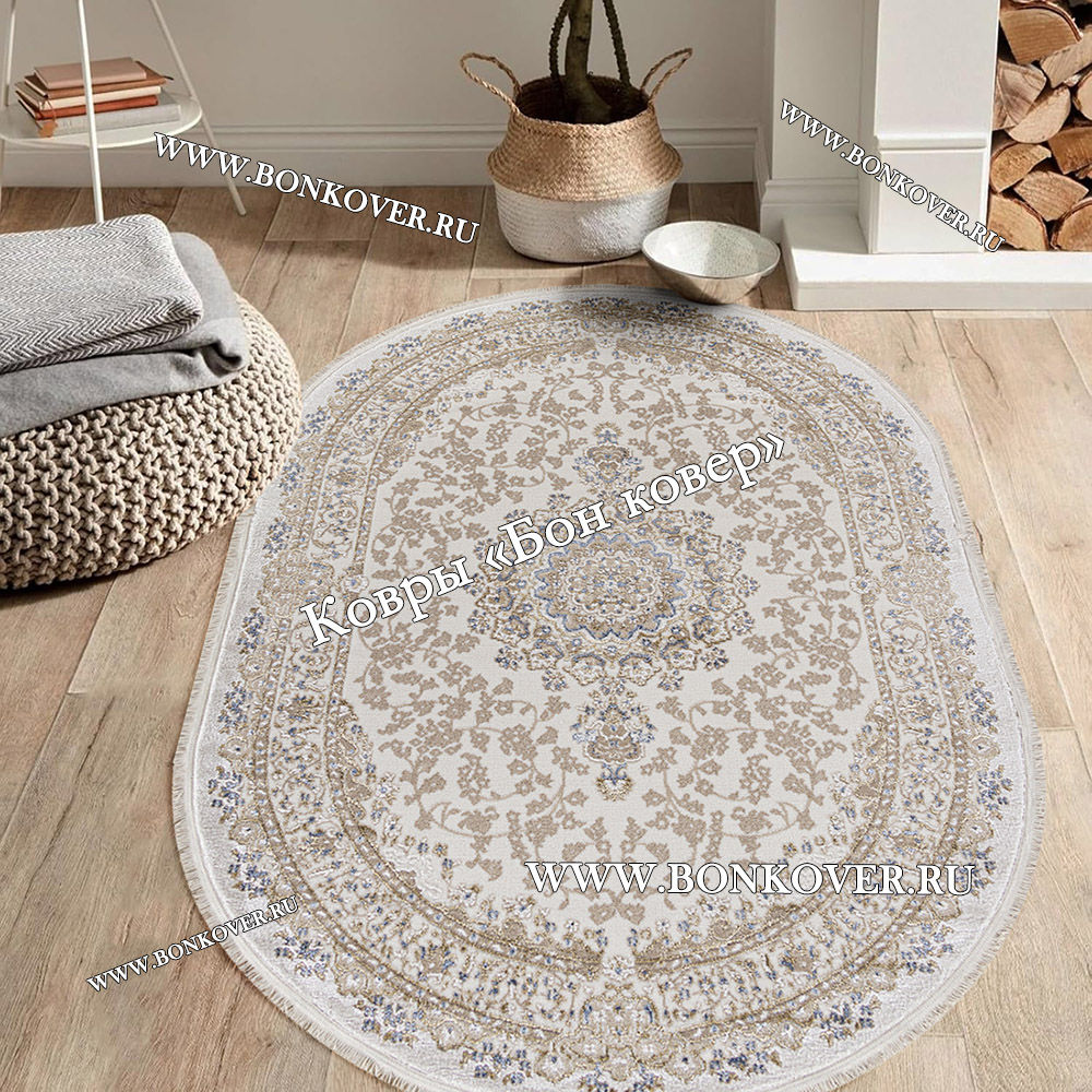 Шикарный Турецкий Ковер Для Гостиной Медальон Дизайн 06 Овал наполняет интерьер жилого пространства теплом и уютом, гармонично сочетает в себе изящество и красоту. Он выполнен из высококачественных материалов, комфортный и долговечный.